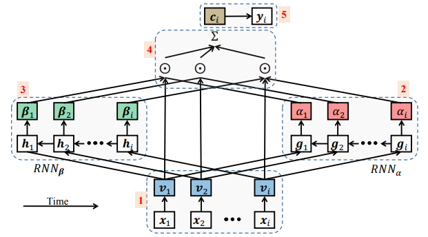 $g_i \in R^p$로 $RNN_\alpha$의 hidden layer에 속하고 $w_\alpha \in R^q$와 $b_\alpha \in R$는 학습 가능한 파라미터 입니다.